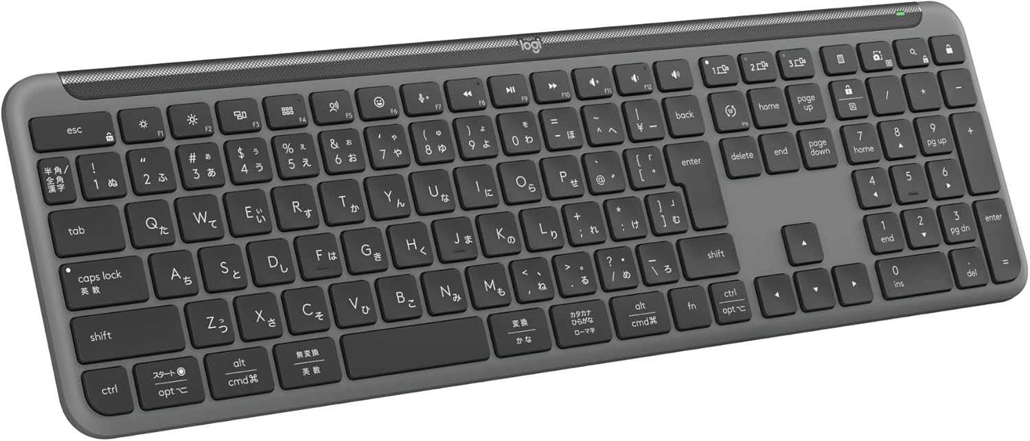 ロジクール K950GRは、薄型・静音・テンキー搭載・マルチデバイス対応というバランスの良さが光る、約1万円の価格帯の中で非常に完成度の高いワイヤレスキーボードです。ユーザーの評判を総合すると、コストパフォーマンスの高さ、デザインの良さ、静音性の3点が特に高い評価を受けています。